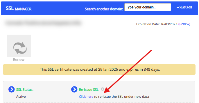 Compliance with new Certificate Authorities policies New Certificate Authority policies require periodic revalidation of domain ownership (typically every 200 days or earlier, starting with certificates purchased after 15/03/2026). For this reason, you may need to reissue your certificate before its expiration date.