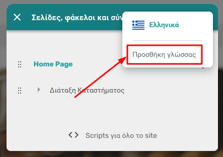 Για να προσθέσεις μια νέα γλώσσα στη σελίδα σου στο Website Builder, ακολούθησε τα παρακάτω βήματα: